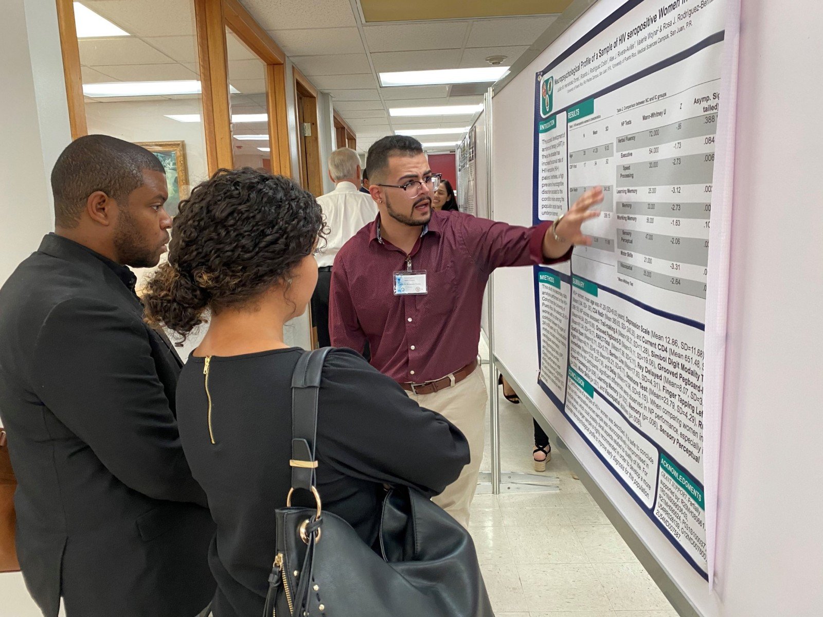 The 60 main presenters included students from undergraduate, graduate, and doctoral levels and medical residents, these last ones from the Manati Medical Center and UPR-Medical Sciences Campus. Most of the undergraduate students were from the University of Puerto Rico campuses at Cayey, Rio Piedras, Bayamon, and Humacao. The graduate students were from UPR-Medical Sciences Campus, Ponce Health Sciences University, and Universidad Central del Caribe. Universidad Ana G. Mendez had both undergraduate and doctoral level participants.