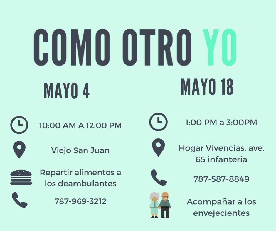 Delivery of food to homeless of Old San Juan. A total of 48 sandwiches and 48 bottles of water were delivered. Date: May 4, 2019 Hours: 9:00 am-12:00pm Place: Old San Juan, San Juan, PR VOLUNTEERS
