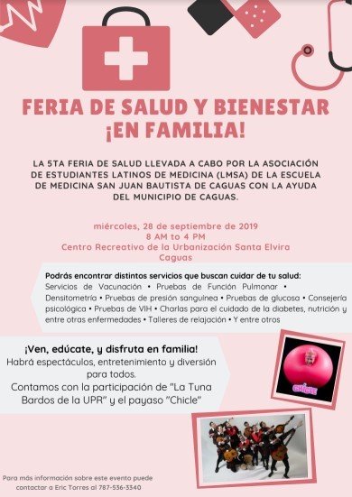 San Juan Bautista School of Medicine provided healthservices: blood pressure, blood glucose evaluation, BMI measurement and generalhealth consultation
