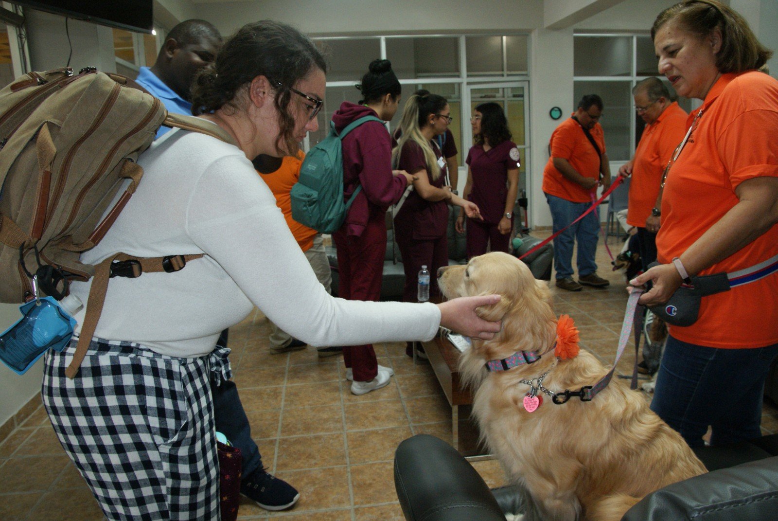 An initiative coordinated by SJBSM students ,faculty and Puerto Rico Therapy Dogs Provide therapy sessions with dogs.