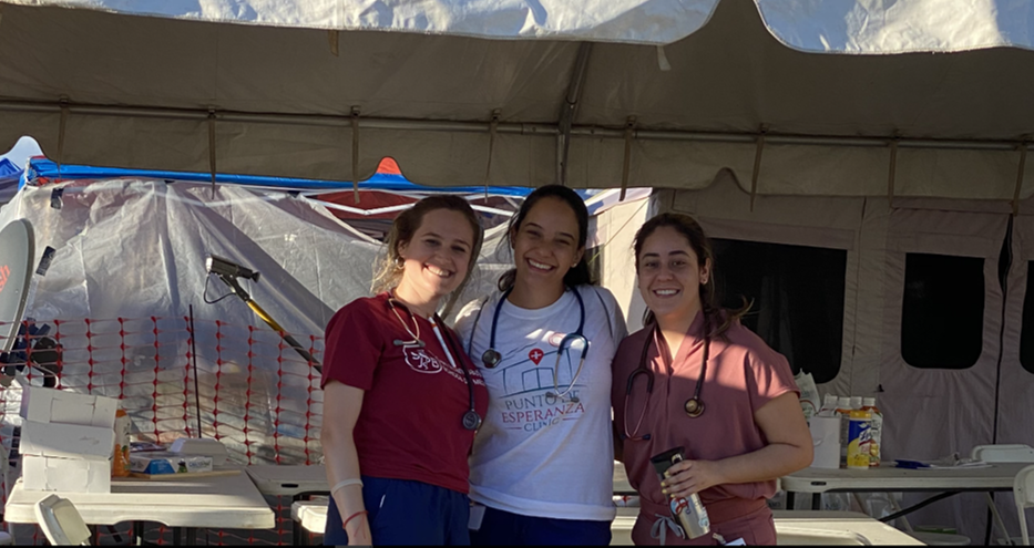 The students of the San Juan Bautista School of Medicine: Taimy Falcón • Evián Pérez • Nicole Febles, they were in the Dra. Santos Camp in Guayanilla, providing health services to the entire community. About 70 patients were cared for.
